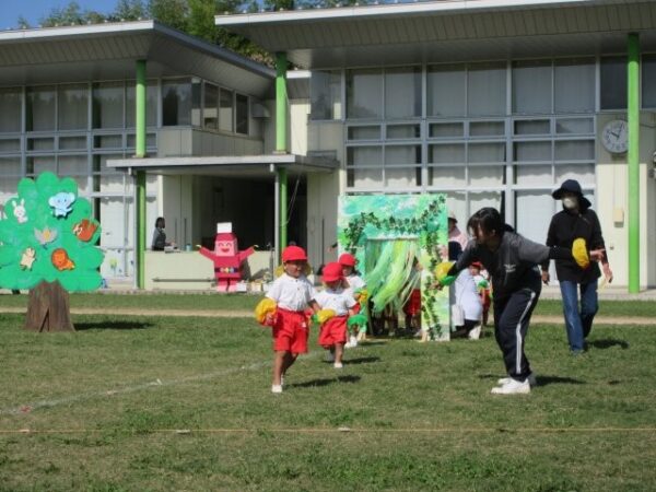 保護者の方々のたくさんの応援の中、かけっこ、遊戯や競技。