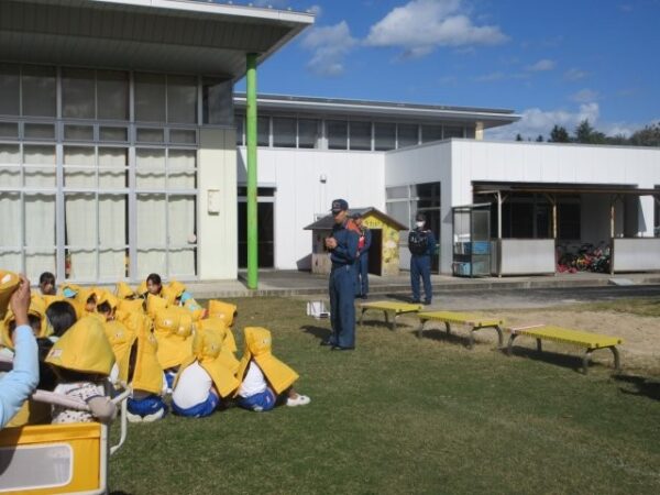 避難のあとは、消防士さんのお話もまっすぐな目で聞いていましたよ。