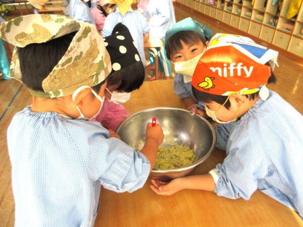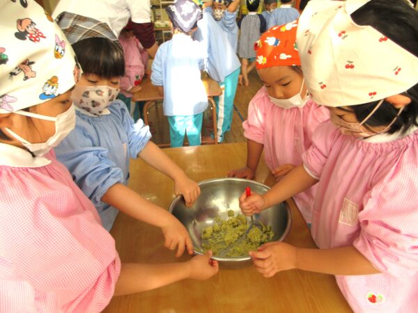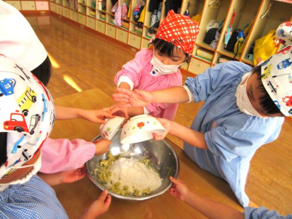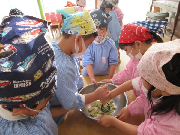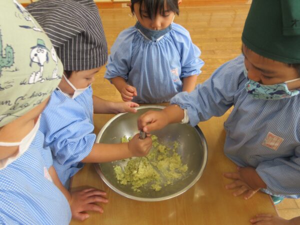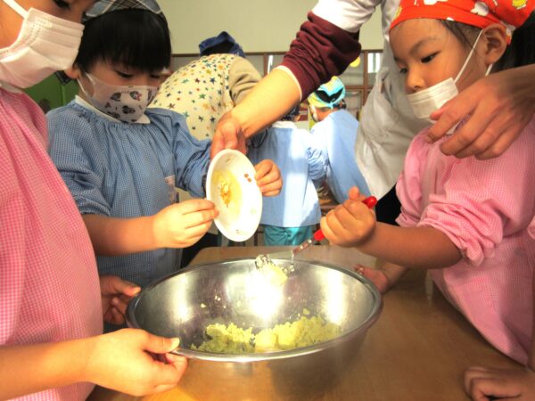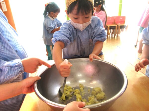 さつまいもを潰す工程、捏ねる工程どの工程でも「グループのみんなで順番ね」と子ども達同士で言い合い、協力してクッキングをしていましたよ。