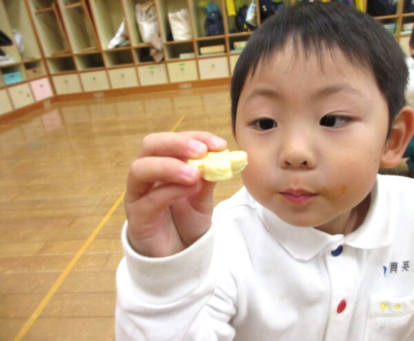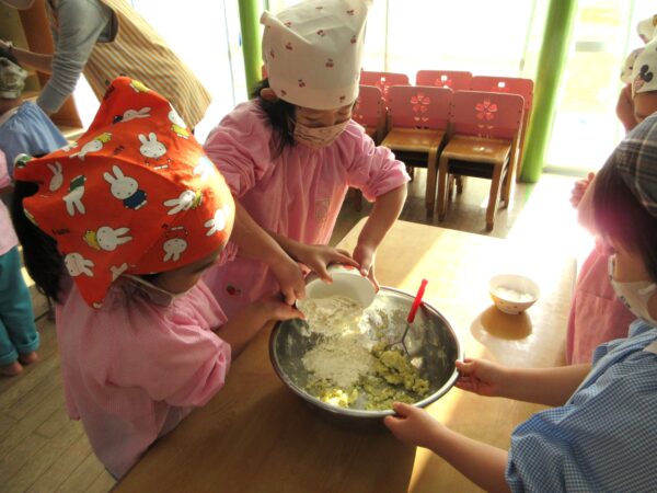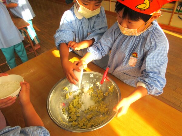 [掲載日]2025.12.01幼稚園で収穫したさつまいもを使い、さつまいもクッキー作りにチャレンジしました。