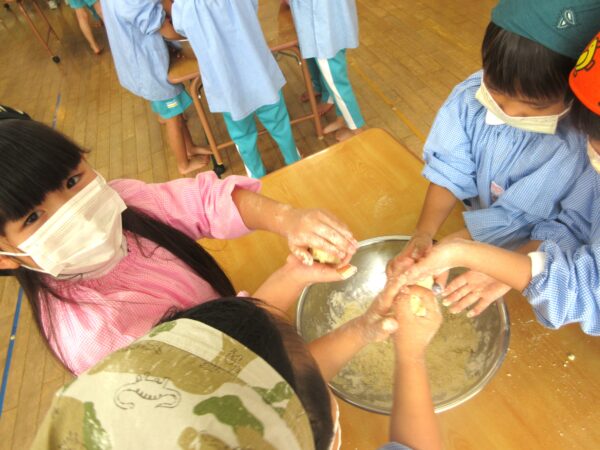 さつまいもが潰れていく度に「さつまいものいい匂いがしてきたね」という声や、捏ねる作業では「気持ち良いね」など工程毎にかわいい会話も聞こえてきましたよ。