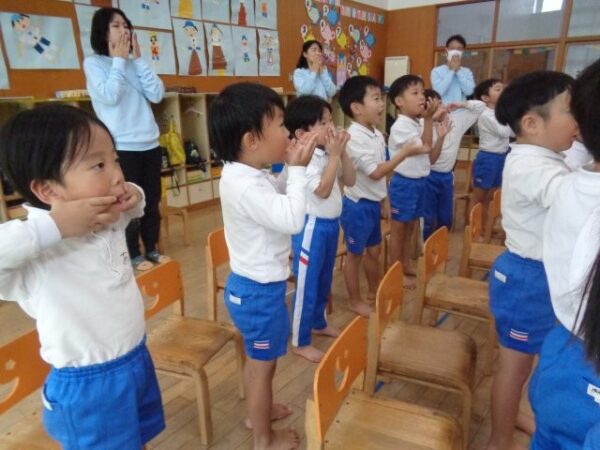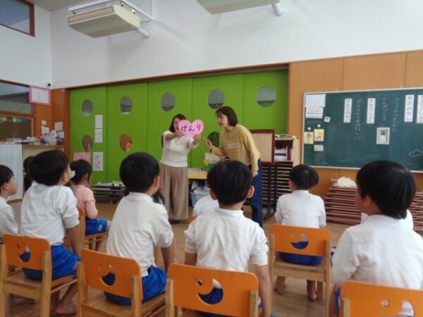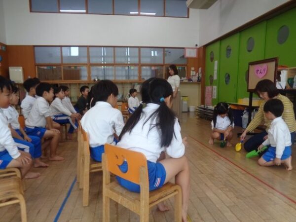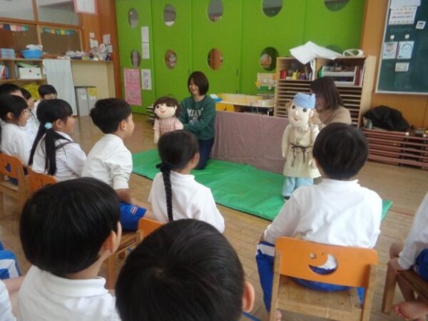島根CAP様にお越しいただき、つき組(5歳児)さんがロールプレイ(役割劇)や人形劇を用いて人権について学びました。