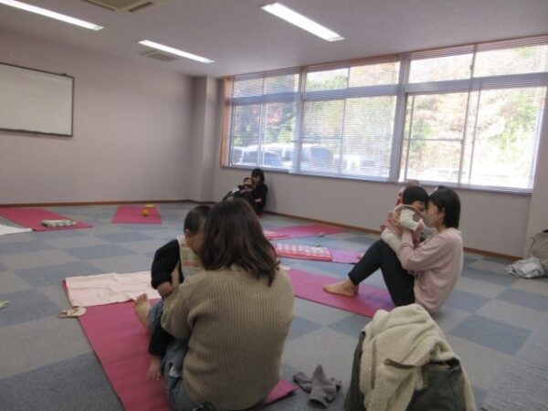 松江市を中心にご活躍されている一般社団法人日本マタニティフイットネス協会認定インストラクターの嶋本先生にお越しいただき、楽しい音楽に合わせてお母さんが身体を動かしたり、お子様といっしょに触れ合ったりしましたよ。
