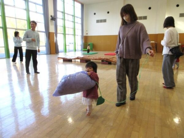 お子様がお芋、保護者の方がお芋を掘る人になり、お芋掘りごっこをしたり、お芋掘り競争をしたりしましたよ。