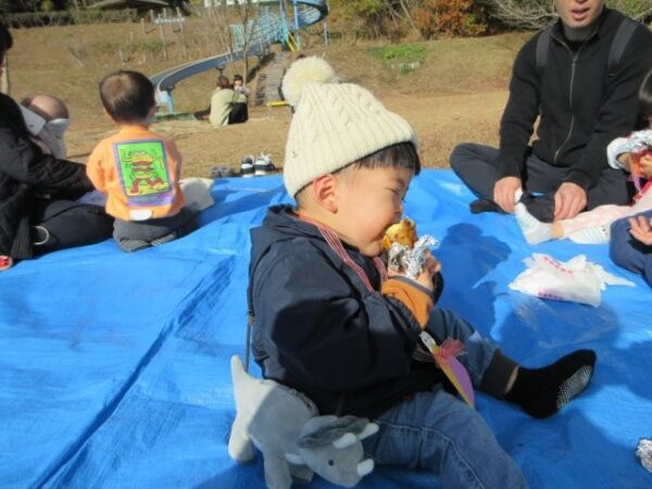 たくさん体を動かした後は、お待ちかねの焼き芋!ほくほく、しっとり。甘くておいしい焼き芋ができましたよ。