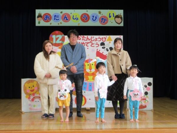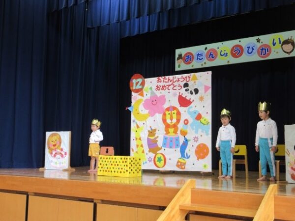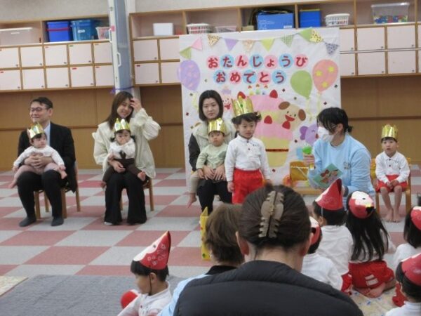 誕生会では、「おめでとう」の言葉を伝えたり、お歌を歌ってお祝いしたり楽しい時間になりました。