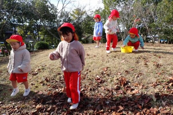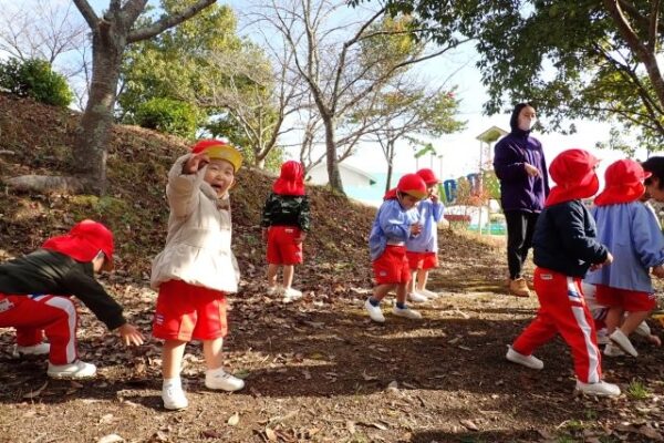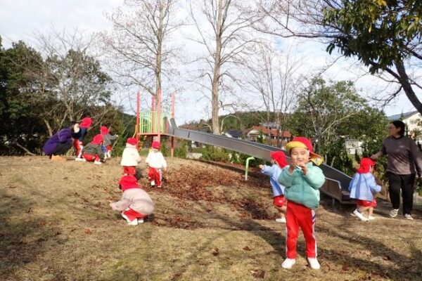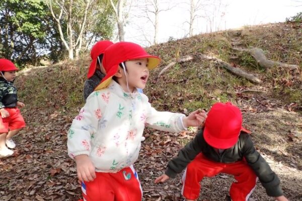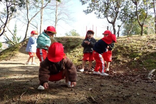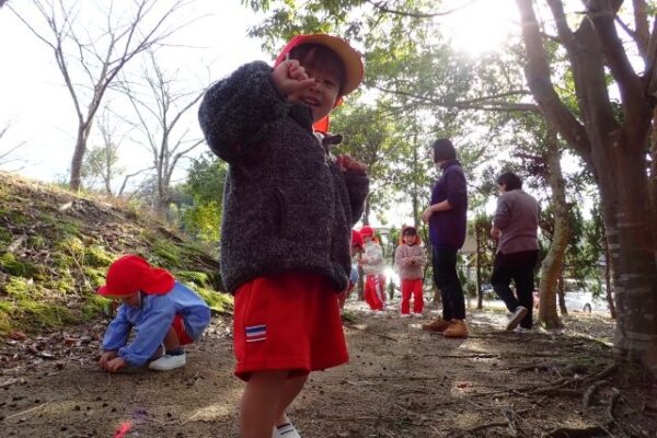 [掲載日]2025.12.28こぐま組(2歳児)さんが、ぼうけんの丘にどんぐり探しに行きましたよ。