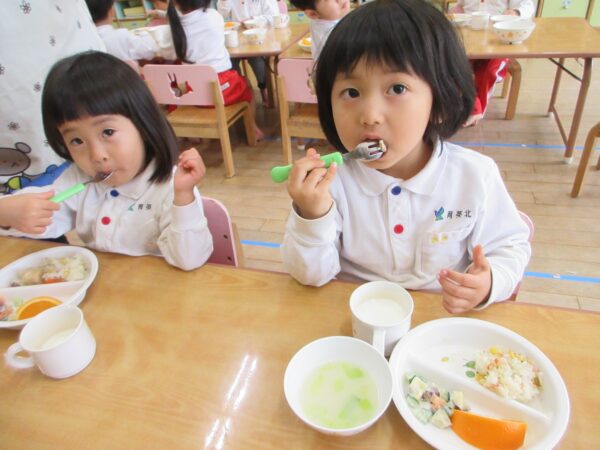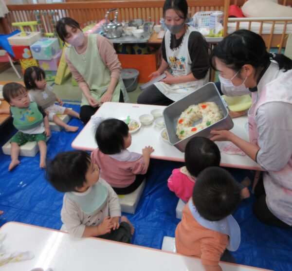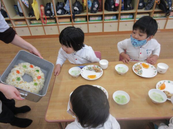 白ご飯だと普段食べ進まないお友達も沢山「おかわりちょーだい!」と綺麗に食べてくれましたよ!