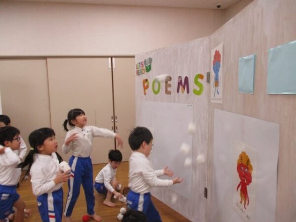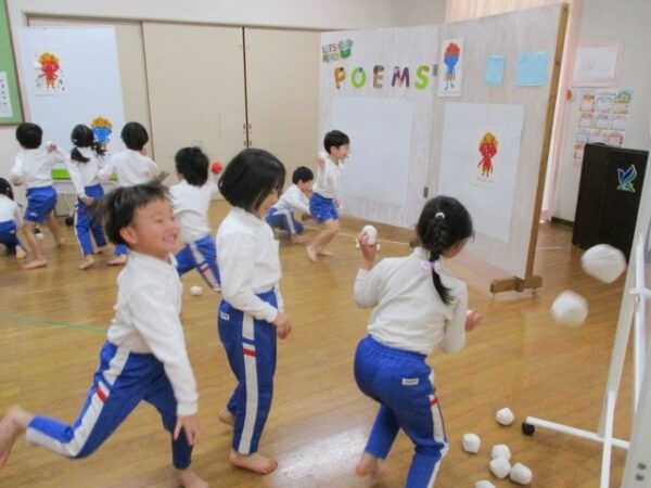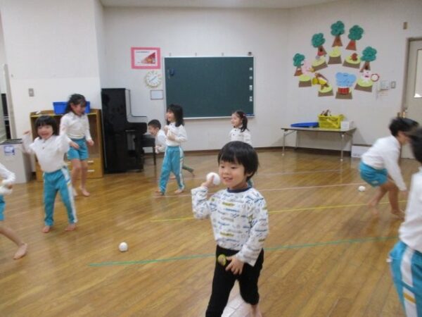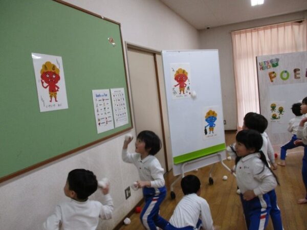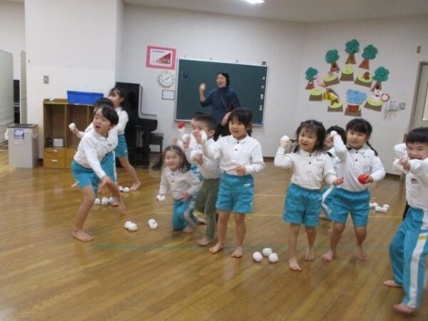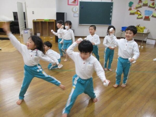 もうすぐ発表会もある子どもたち。発表会に向けても、“この鬼さんは退治したい!!”とそれぞれが心の中で決め、何度も玉を投げ鬼さんとお別れをしましたよ。