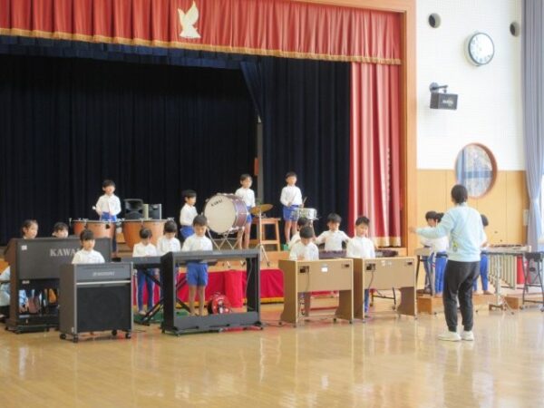 今月は、発表会があったのでつき組さんの合奏をみんなで聞きました。