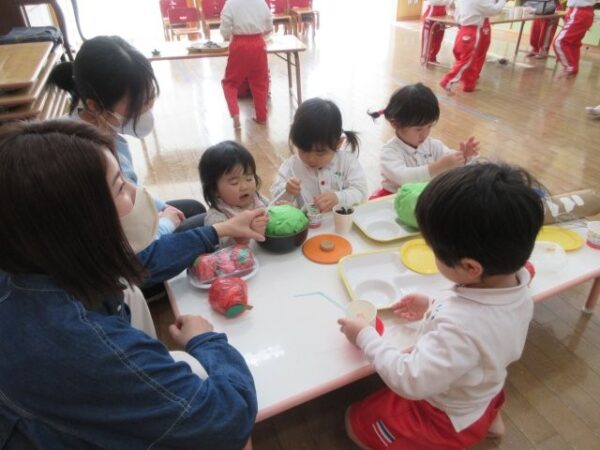 ぱんだ組(3歳児)さんのお部屋では「フルーツバスケット」をしました。
