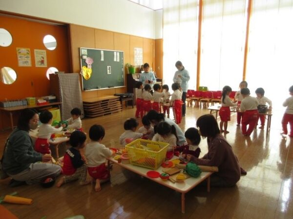 こあら組(2歳児)さんのお部屋では「おままごと」。