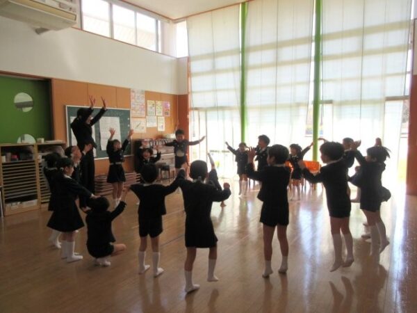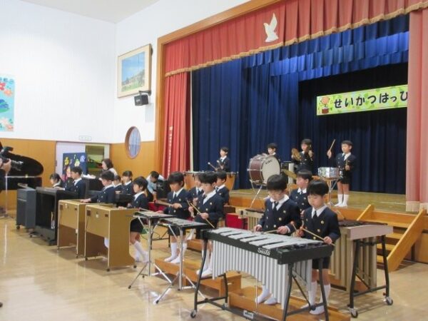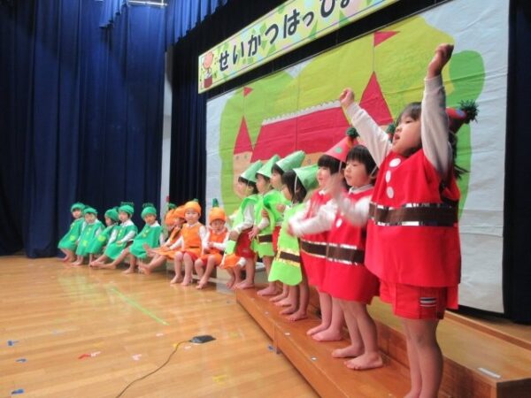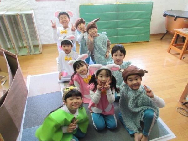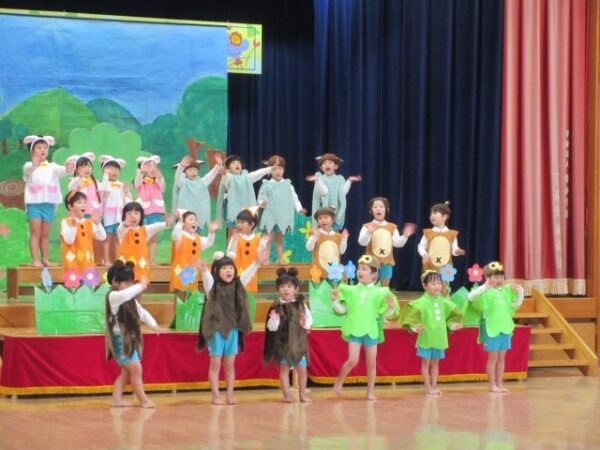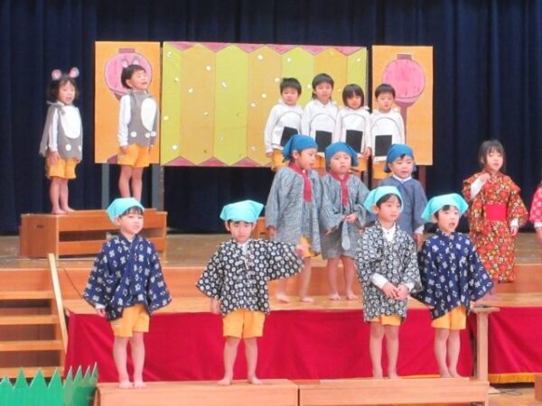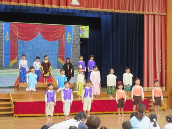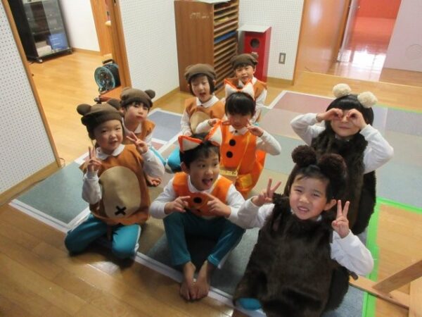 つき組さんは、幼稚園で最後の発表会。憧れの英語劇やたくさんの楽器を使った合奏挑戦しました。