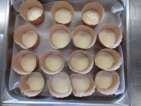 次はスプーンを使って型に生地を入れ後は焼き上がりを待ちます☆彡