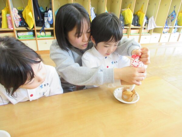 つき組さんになっても沢山の食材に触れて楽しみながら食経験を積み重ねていこうね。